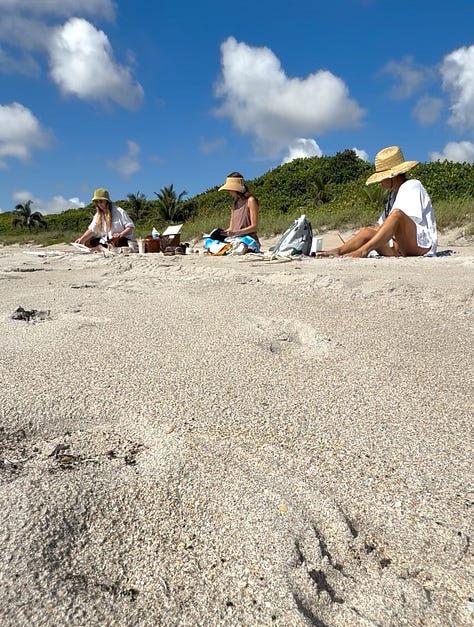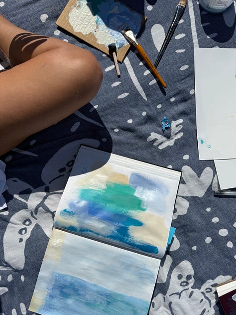 Also, making art outside seemed like an act of rebellion. Observing color in real-time atmospheric conditions feels luxurious—after all, no filters or screens are altering our view. It also feels really connected to be in nature with fellow creatives. Feeling connected right now while political chaos aims to separate us further from each other is absolutely rebellious.